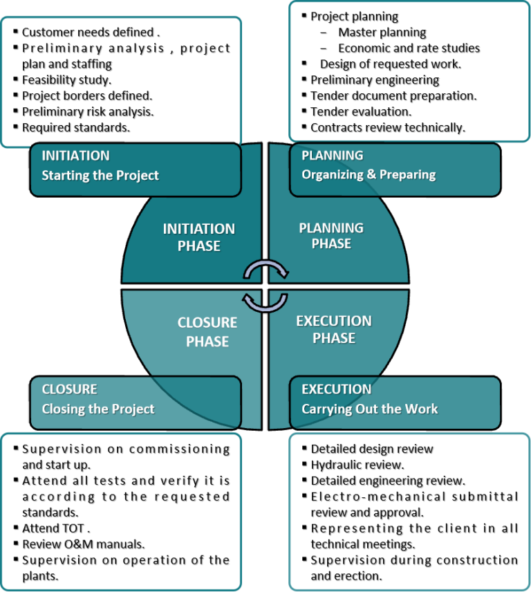 WTCO provider all the services required to successfully implement technically proven water treatment projects, considering the optimum total water cost per produced cubic meter and the optimum negative environmental impact for all consumable items such as achieve minimum chemical consumption and energy efficient systems. These project services for water infrastructure facilities and water treatment plants cover all phases within a project and can be divided into several groups depending on for whom the services is contracted, either project owners, contractors or investors. WTCO provides independent and multidisciplinary engineering solutions by our ability to act on behalf of project owners, contractors or investors, Moreover attaching high importance to perform these services in accordance with state-to-art engineering methodologies.
